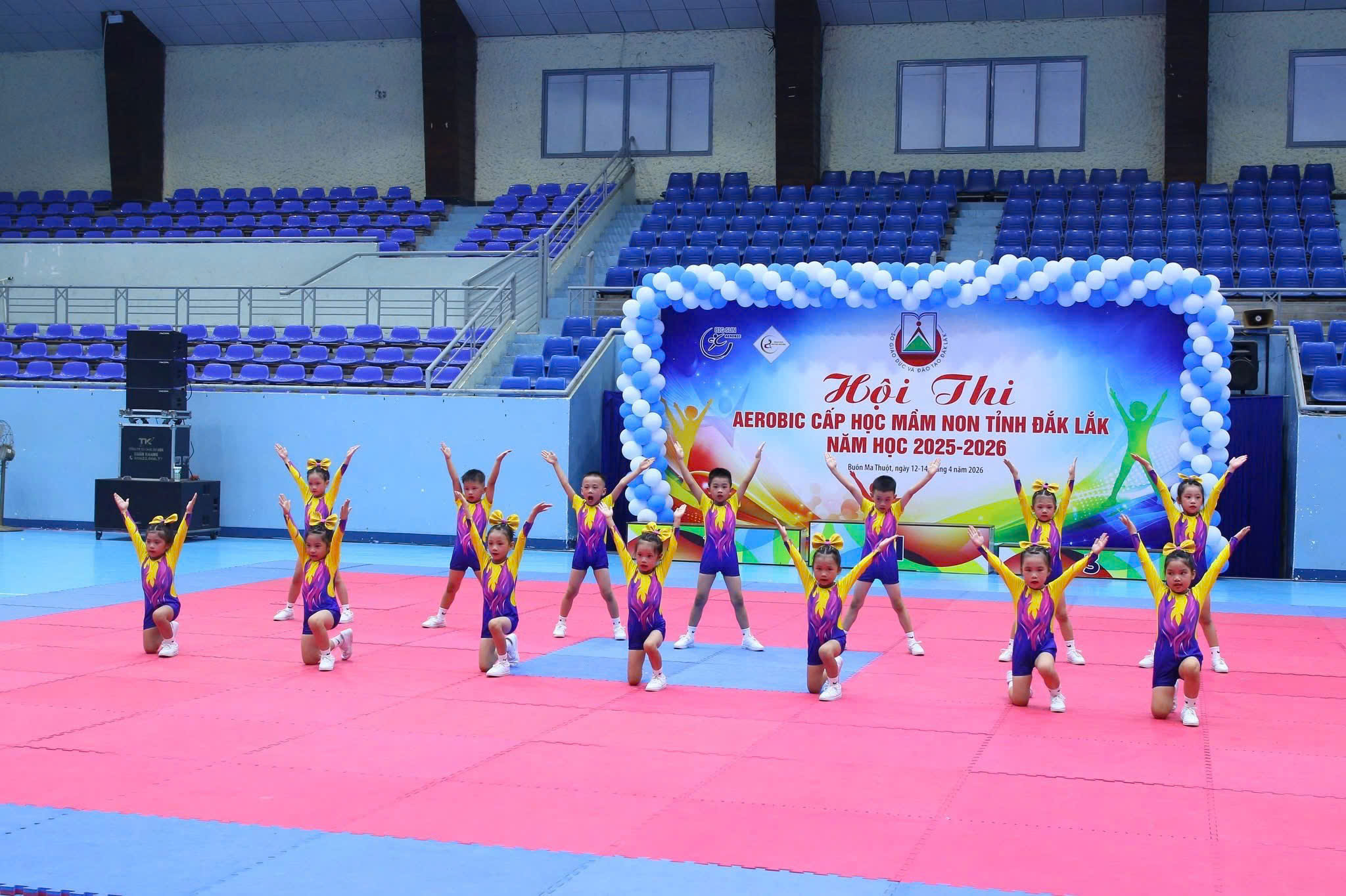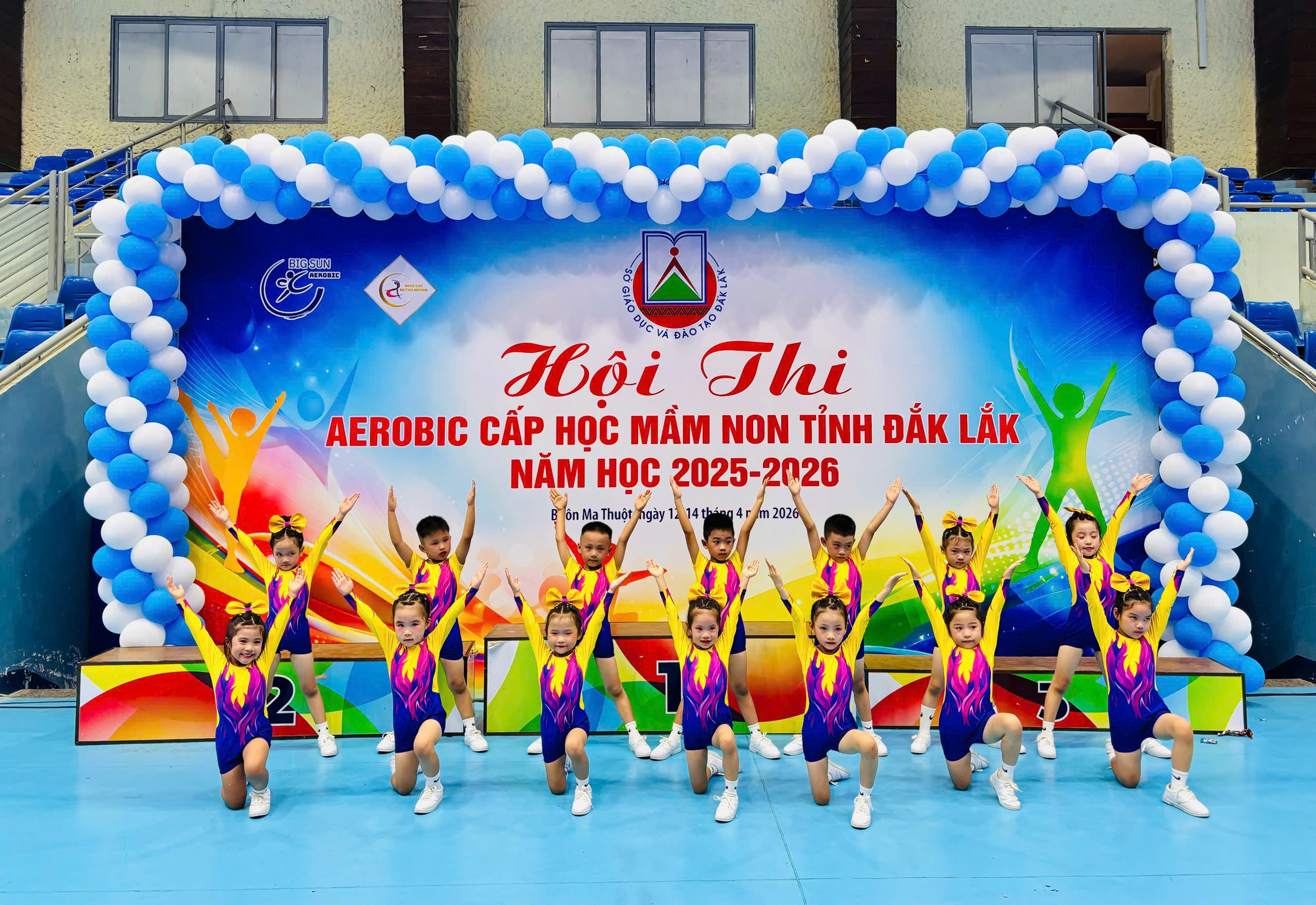Hội thi Aerobic cấp tỉnh là sân chơi quy mô lớn, thu hút 77 đội thi với hơn 1.300 trẻ tham gia, tạo nên không khí sôi nổi, hào hứng và đầy màu sắc. Tham gia hội thi, các bạn nhỏ của trường đã thể hiện tinh thần tự tin, đoàn kết và quyết tâm cao.
