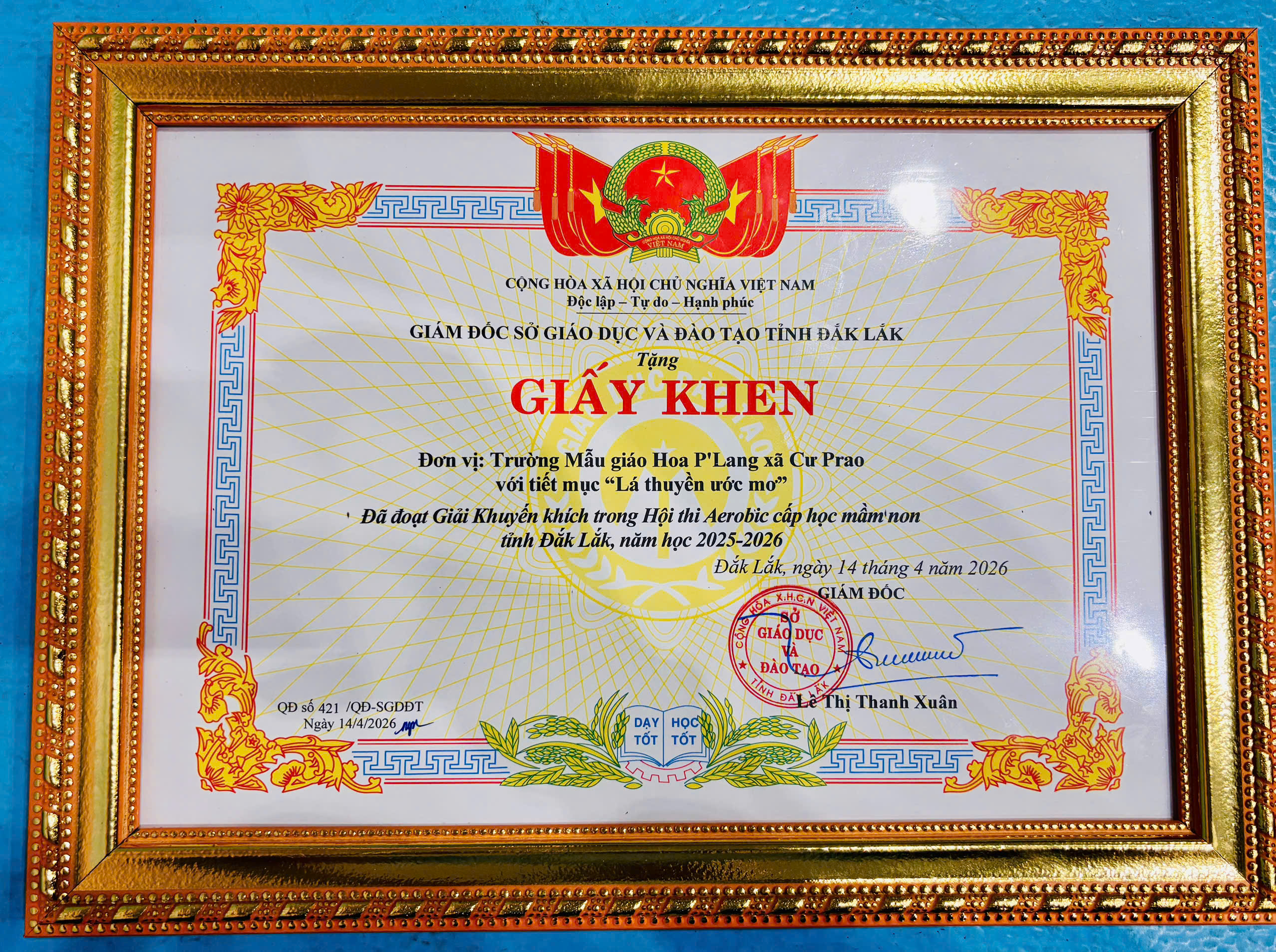 Sau khi xuất sắc đạt giải Nhất tại Hội thi Aerobic cấp xã với tiết mục “Lá thuyền ước mơ”, 14 em nhỏ Trường Mẫu giáo Hoa P’Lang đã vinh dự được lựa chọn đại diện cho xã Cư Prao tham gia Hội thi Aerobic cấp tỉnh. Đây là niềm tự hào lớn của nhà trường, đồng thời là minh chứng cho sự nỗ lực không ngừng của cô và trò.